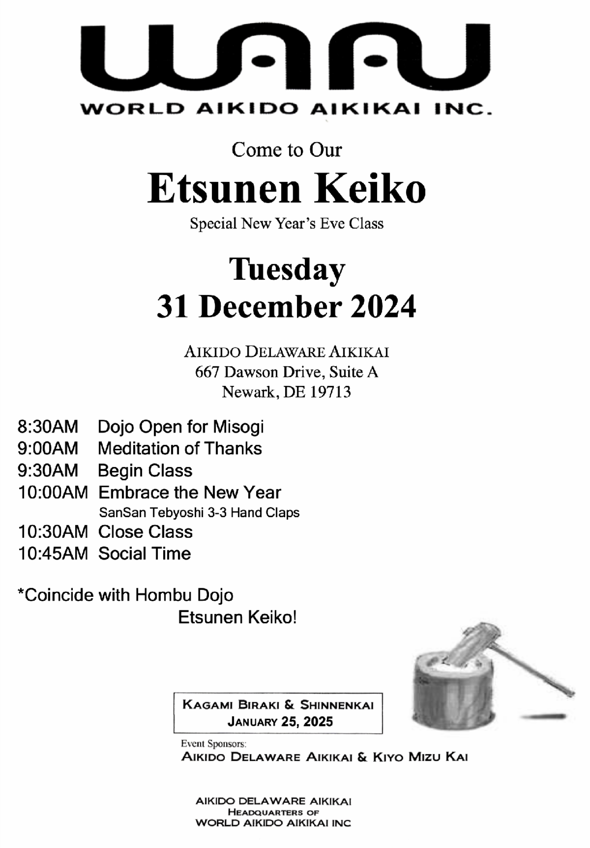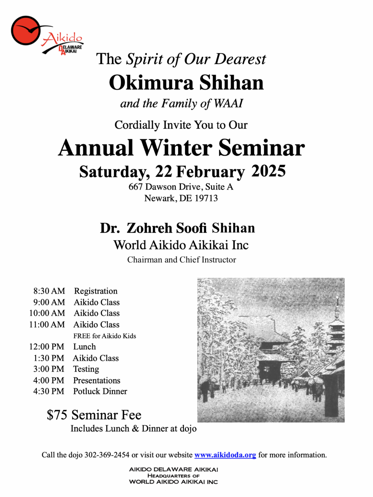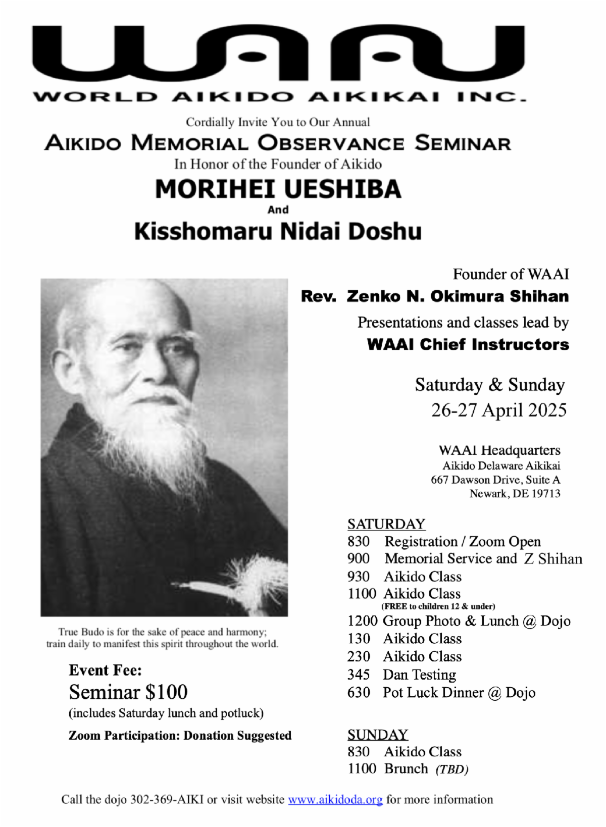 by virtue of O'Sensei, the gift of Aikido which was graciously bestowed